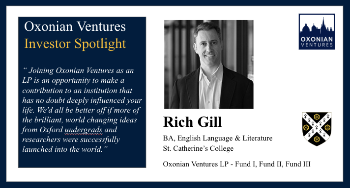 Rich Gill is a Founder of Wealth Partners Capital Group and a former Principal for Oxonian Ventures Fund I, and an LP for Fund II and IIII. Rich studied English Language and Literature at St. Catherine’s College, matriculating in 2000. While at Oxford he participated in College and Varsity Boxing.
